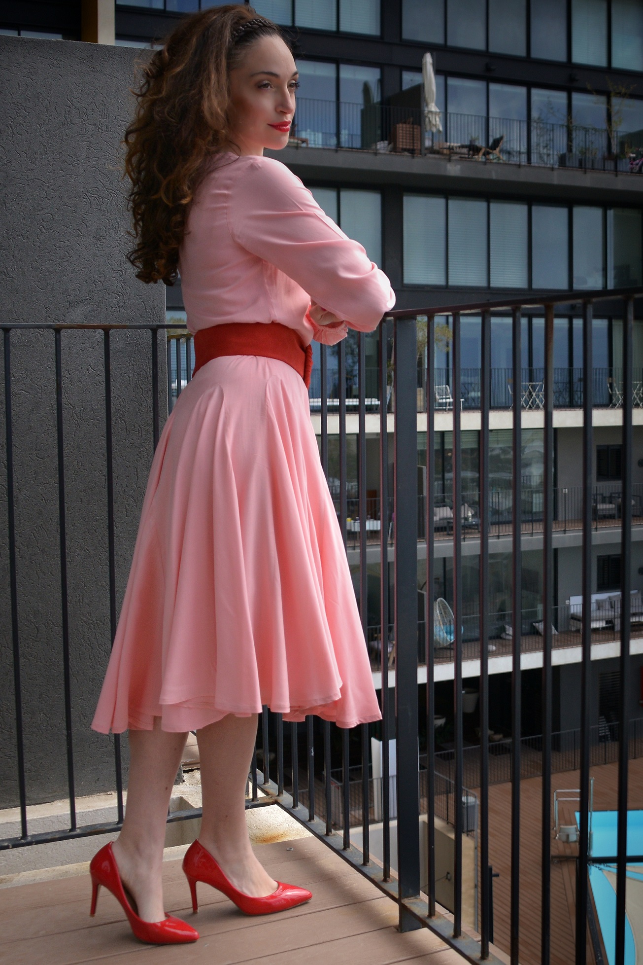 - רוויה בן יהודה- מעצבת המותג רוו'ש. כיסוי ראש בעיצובה 150 שח, שמלה של עדי שרעבי 229 שח, שרשרת של הדס תכשיטים 380 שח, צילום סאן רובין, שי ניר ועדי כץ מטעם המכללה לצילום מנטור