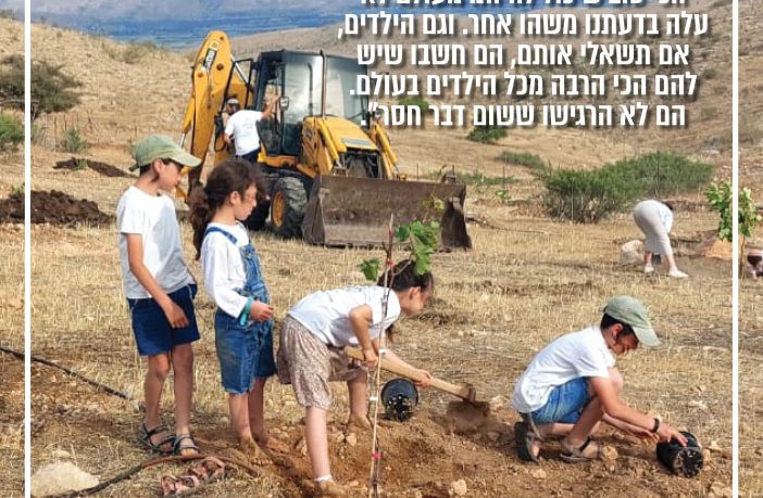 החיים היו פשוטים וחדורי אידיאל. "היינו בעד עם ישראל וארץ ישראל, זה משהו שניווט לנו את החיים. משה לא חיפש לעצמו תענוגות. לקנות עוד חלקת קרקע מערבי, זה היה בשבילו שיא השמחה", אומרת יעל. "הוא לא היה צריך שמחות אחרות. לטייל בארץ ישראל היה הבילוי הכי טוב שיכול להיות. מעולם לא עלה בדעתנו משהו אחר. וגם הילדים, אם תשאלי אותם, הם חשבו שיש להם הכי הרבה מכל הילדים בעולם. הם לא הרגישו ששום דבר חסר".