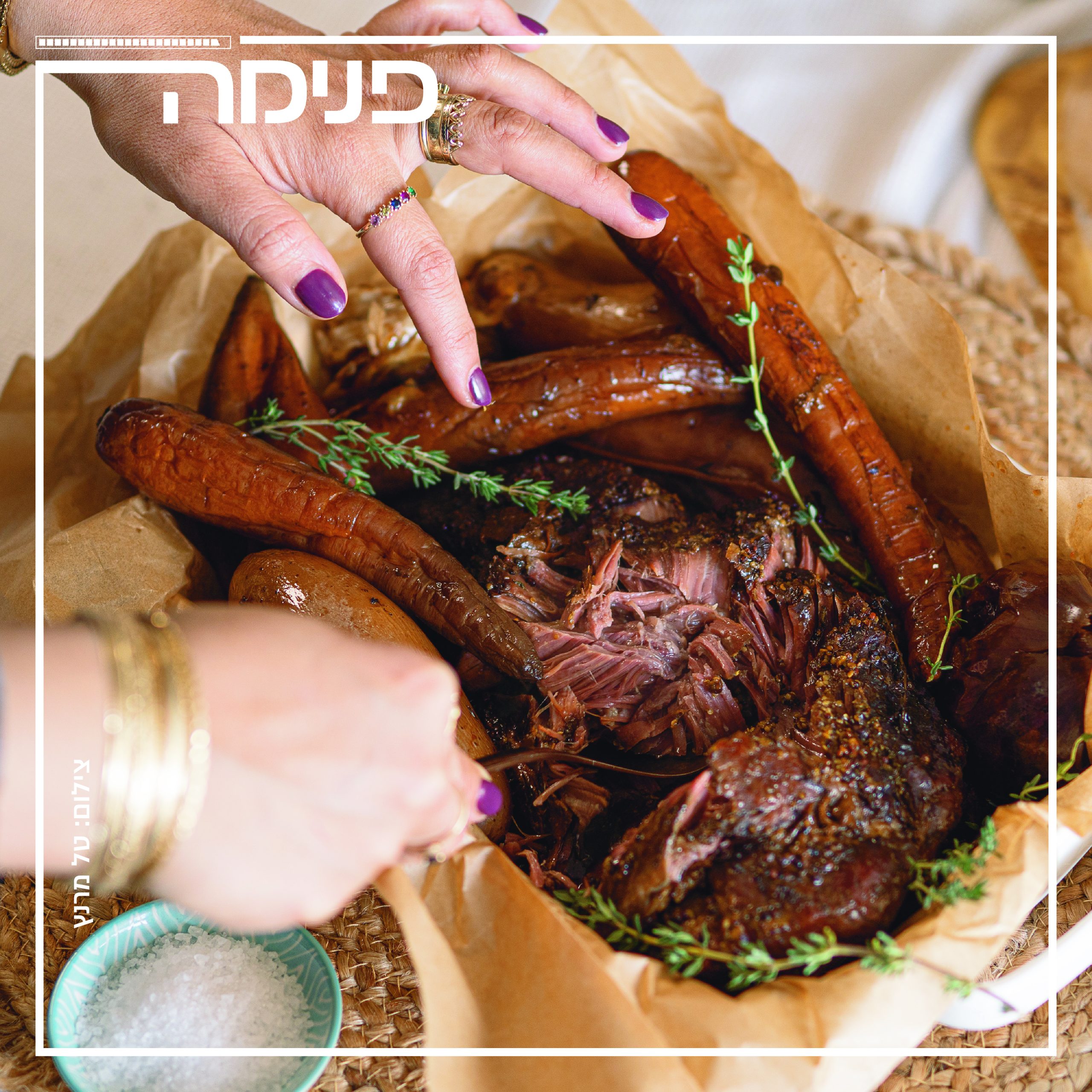 - מכניסים לתנור ללילה שלם (8 שעות) בחום של °120, או ל־6 שעות בחום של °140. ככל שהבישול איטי יותר, כך המנה מוצלחת יותר.